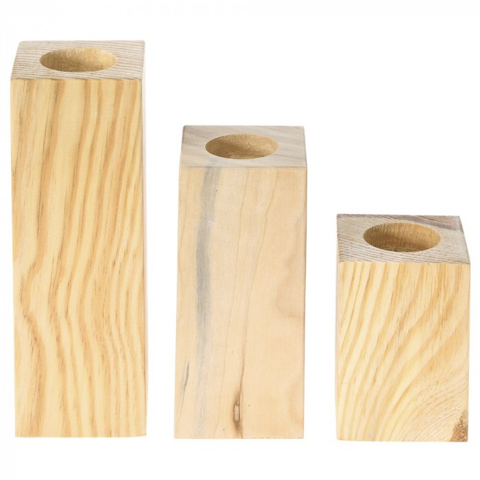 Свещници дърво, натурал, к-т 3 бр