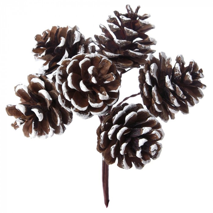 Сноп 6 кафяви заснежени шишарки, ф 2 см