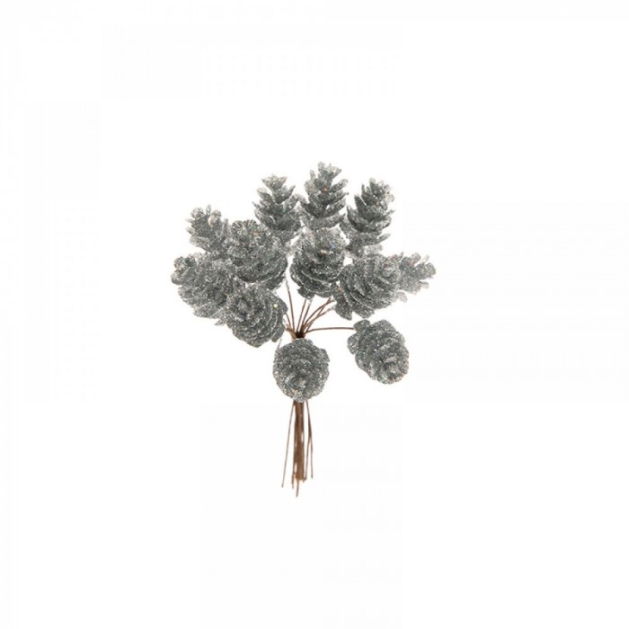 Сноп сребърни брокатени шишарки, к-т 6 бр.