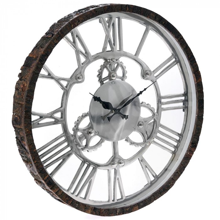 Стенен часовник от дърво и инокс, Ф48 см