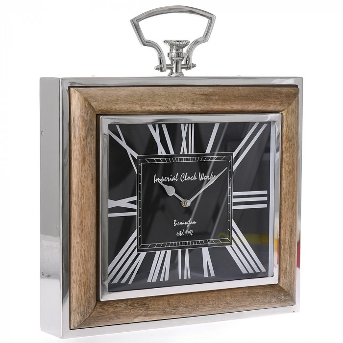 Стенен часовник от масивно дърво и инокс, 41х44 см