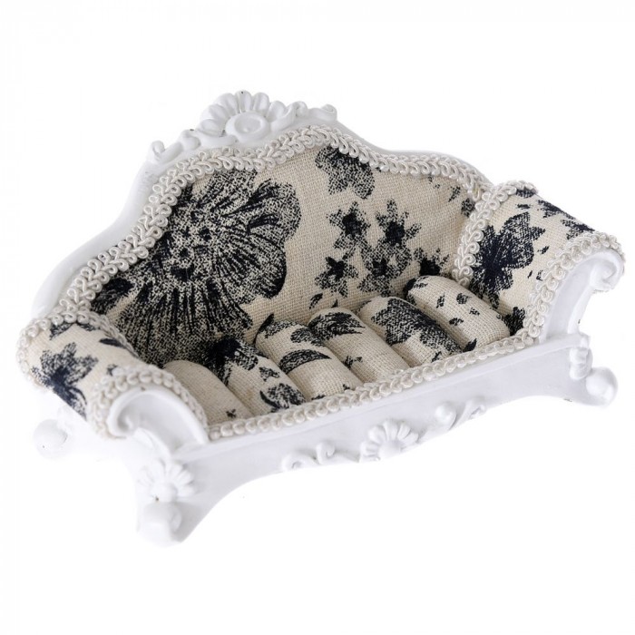 Стойка за бижута, диван, беж с черни цветя, полирезин, 16х7х7 см