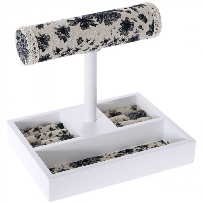 • Стойка за бижута, беж с черни цветя, МДФ, 22х16х22 см