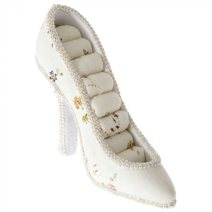 Стойка за бижута, обувка, беж с цветя, полирезин, 15х5х12 см
