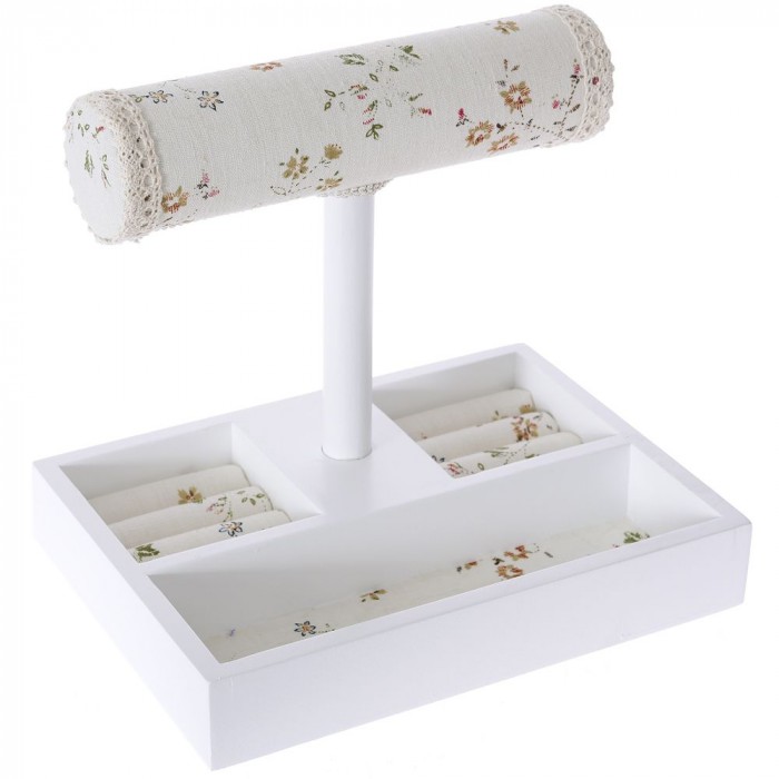 Стойка за бижута, беж с цветя, МДФ, 22х16х22 см