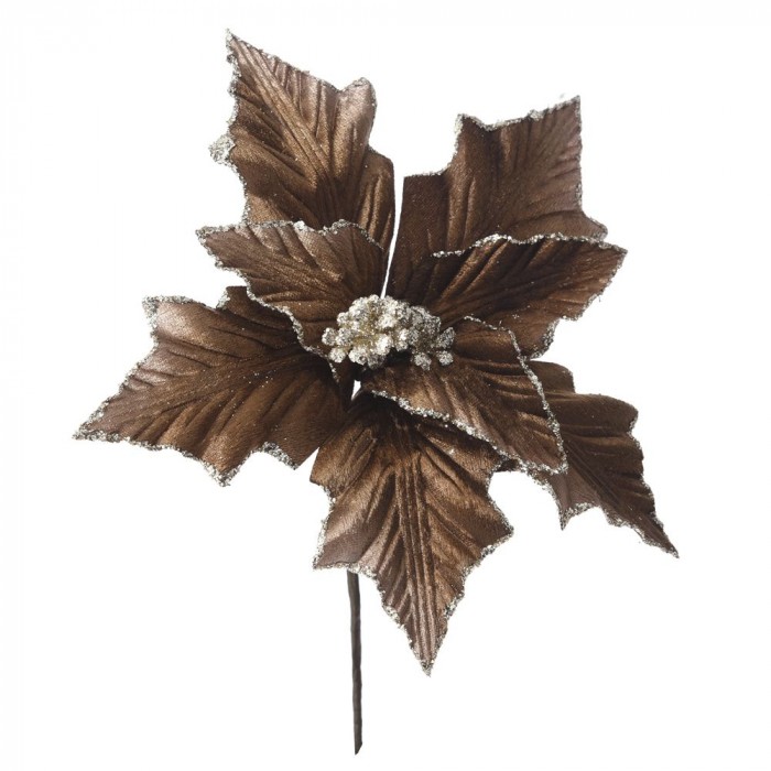 Стрък коледна звезда, кафе с брокат, 24 см