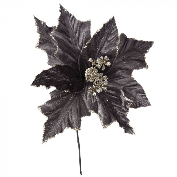 Стрък коледна звезда, тъмно сива с брокат, 24 см