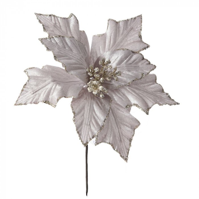 Стрък коледна звезда, шампанско с брокат, 24 см