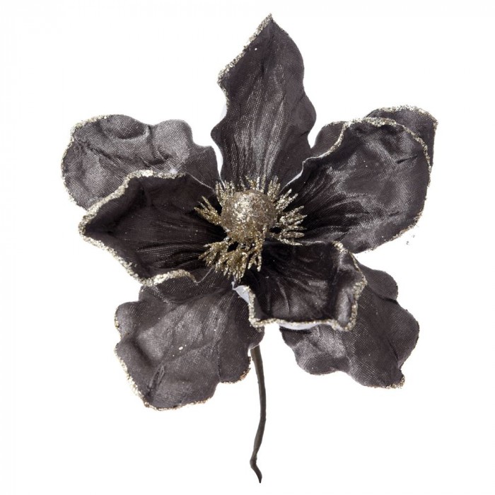 Стрък магнолия, тъмно сива с брокат, 24 см
