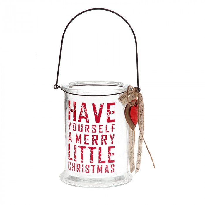 Стъклен коледен свещник с дървено сърце, 12х17 см
