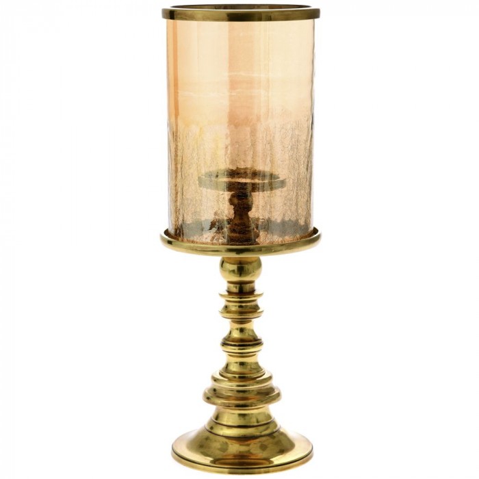• Стъклен свещник с медна основа, Ф16х46 см