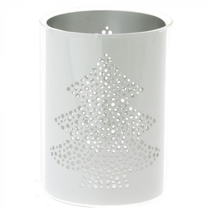Стъклен свещник с метален ринг, елха, 9х12 см