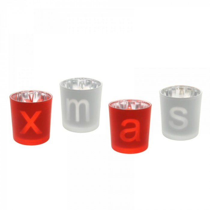 Стъклен свещник букви, 4 бр, мат, червен, 8х8 см