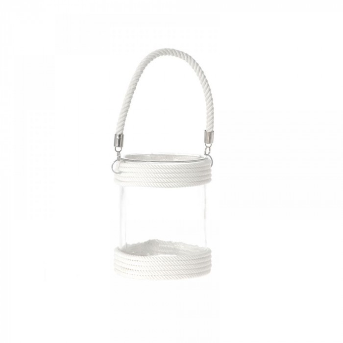 Стъклен свещник декор-въже, бял с дръжка, 14х18 см