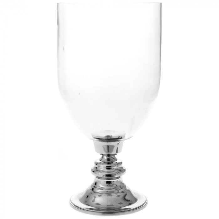 Стъклен свещник с никелирана основа, Ф23х43 см