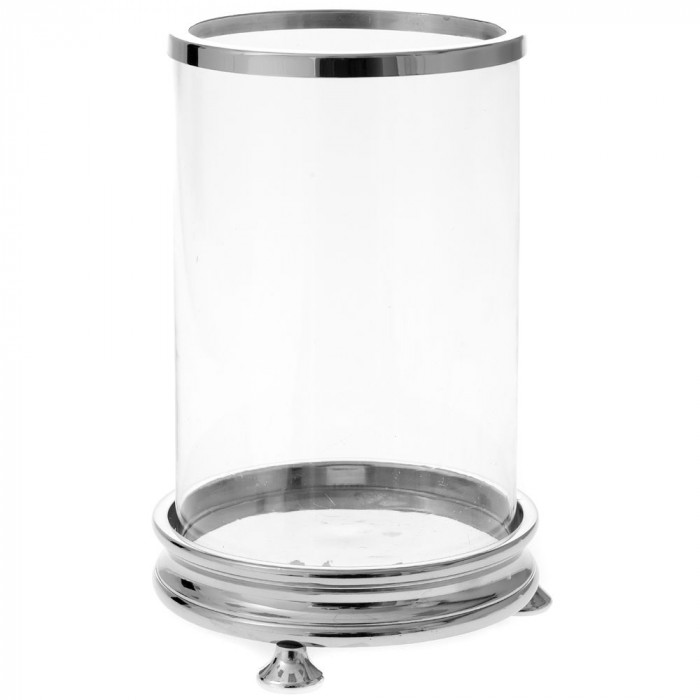 Стъклен свещник с никелирана основа, Ф18х26 см