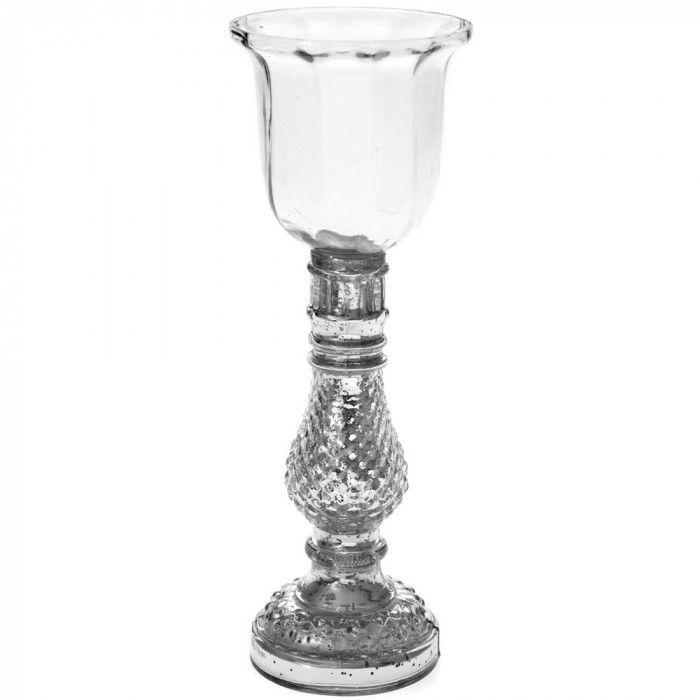 Стъклен свещник със сребърна основа, Ф11х31 см