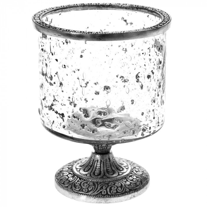 Стъклен свещник с метална декорация, Ф14х17 см
