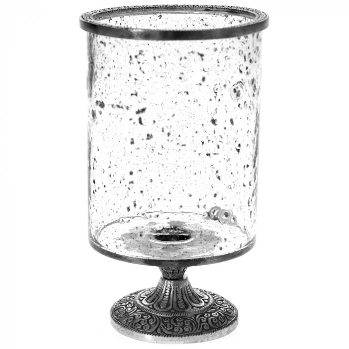 Стъклен свещник с метална декорация, Ф14х24 см