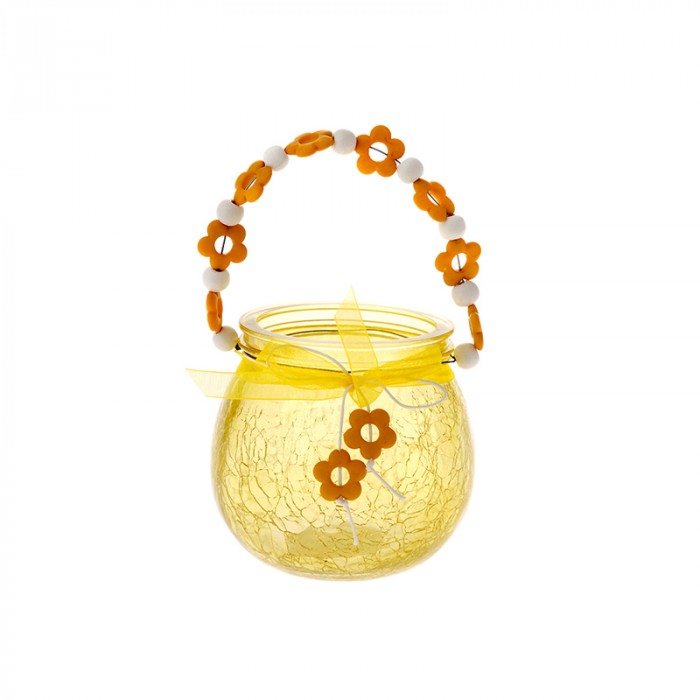 Стъклен свещник цветно стъкло, жълт, 10Х9СМ