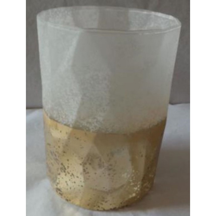 Стъклен свещник, заскрежен, бяло - златен, 13х18 см