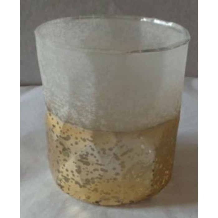 Стъклен свещник, заскрежен, бяло - златен, 11х12 см