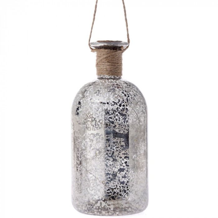 • Стъклена бутилка със светлина, сребърен напукан ефект, ф8х17 см