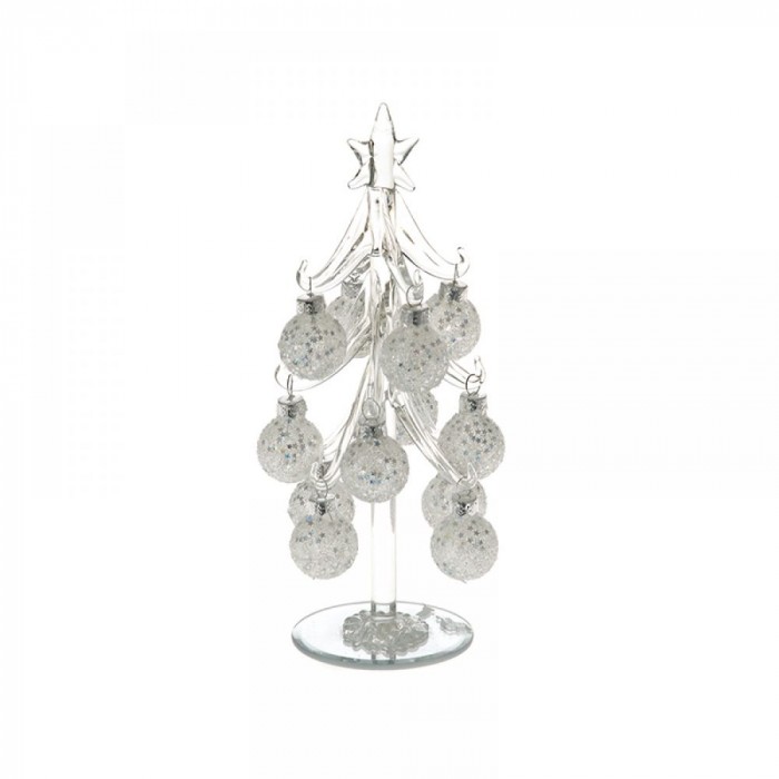 Стъклена елха със сребърни топки, 20 см