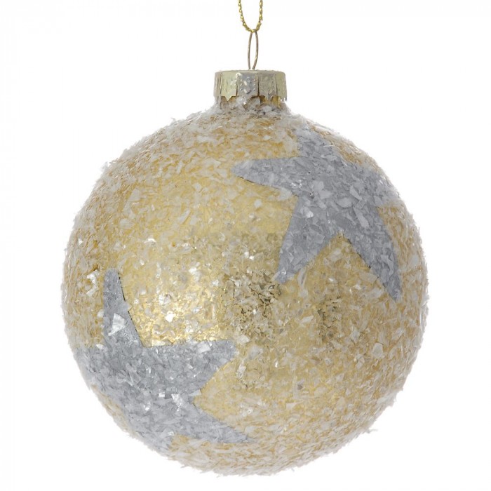 Стъклена топка, златна с брокатена звезда, к-т 6 бр., 8 см