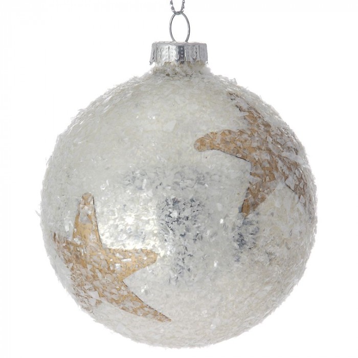 Стъклена топка, сребро с брокатена звезда, к-т 6 бр.,8 см