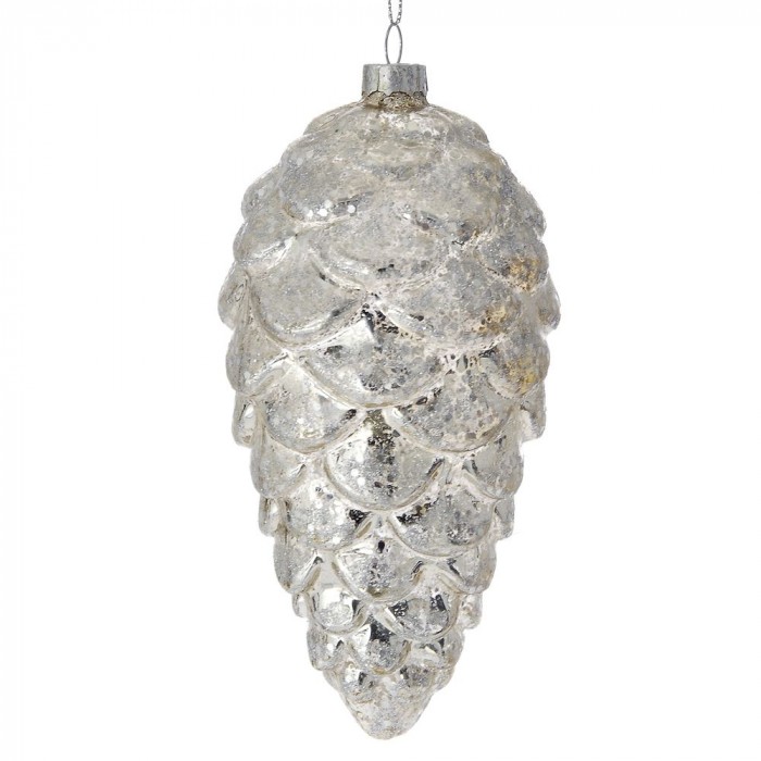 Стъклена шишарка, сребро, к-т 4 бр., 7х15 см