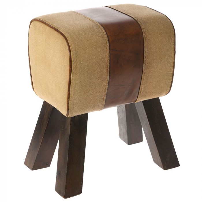 Табуретка от плат и кожа, беж и кафяво, 44х26х48 см