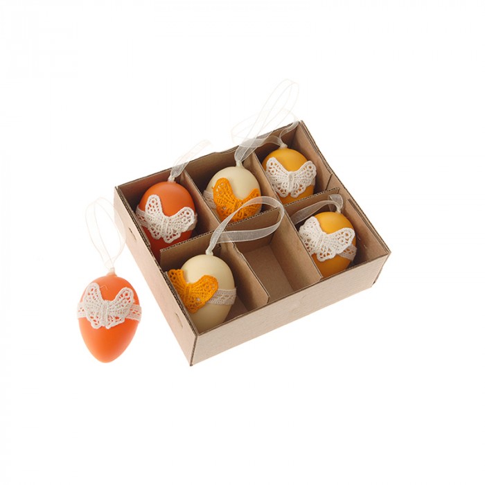 Великденски яйца декор в кутия оранжеви к-т от 6бр,4Х6 CM