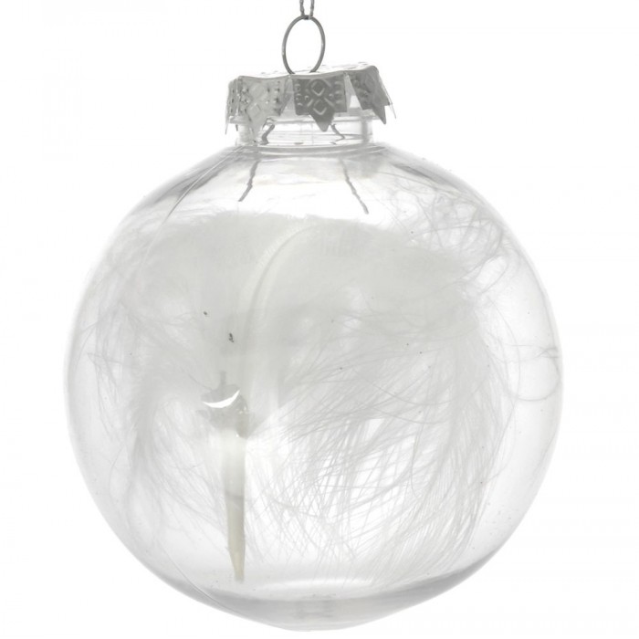 Топка пластик, прозрачна с перо , к-т 4 бр., 10 см