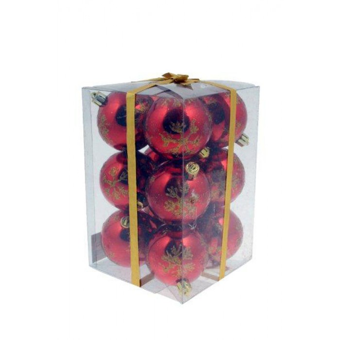 Топки червени мат+гланц с снежинка S/12 6см.(1/48)