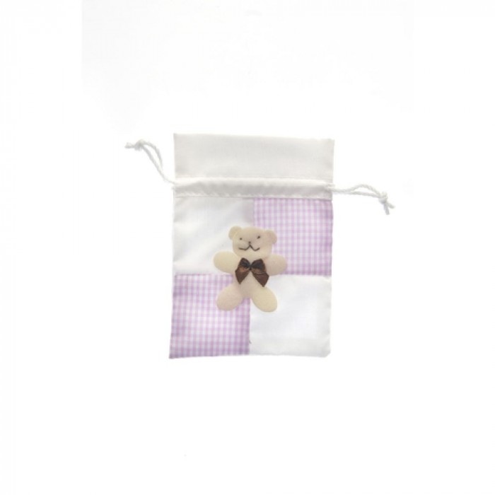 Торбичка плат каре и мече розова 8.5х12CM 1/12