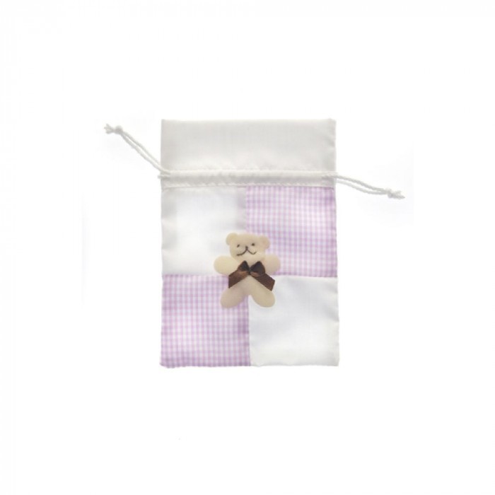 Торбичка плат каре и мече розова 10.5х14.5СМ 1/12