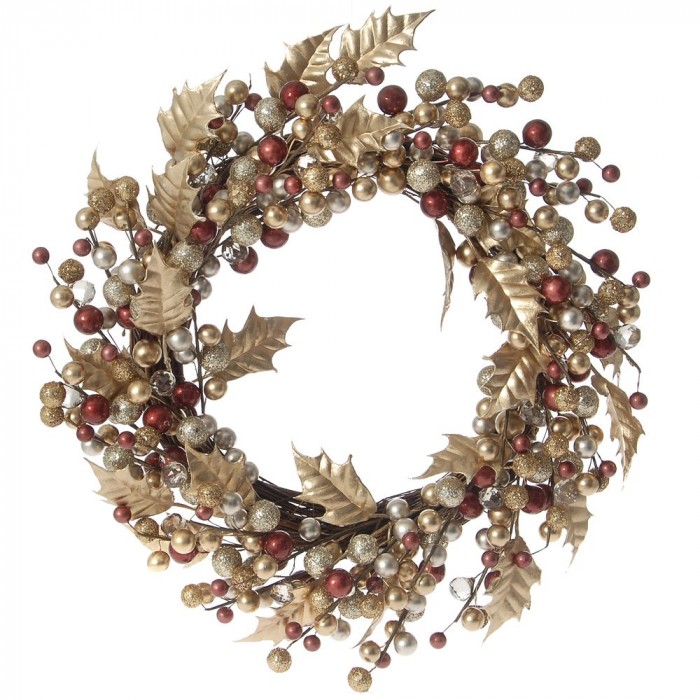 Венец от преплетени боровинкови клонки, злато, 45 см