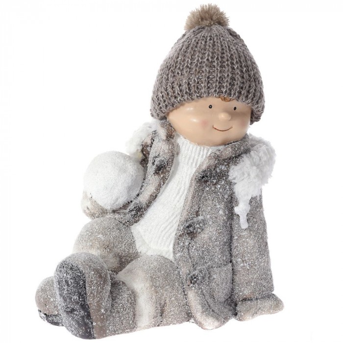 Фигурка момче със снежна топка, поли, светло кафяво, 30х21х35 см