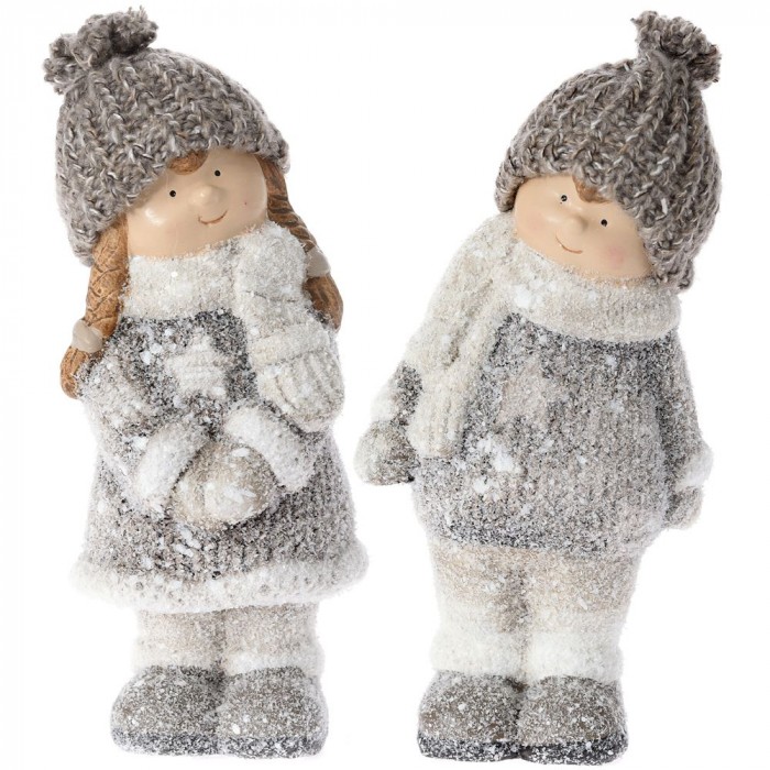 Фигурки момче и момиче, комплект, поли, светло кафяво, 11х8х22 см