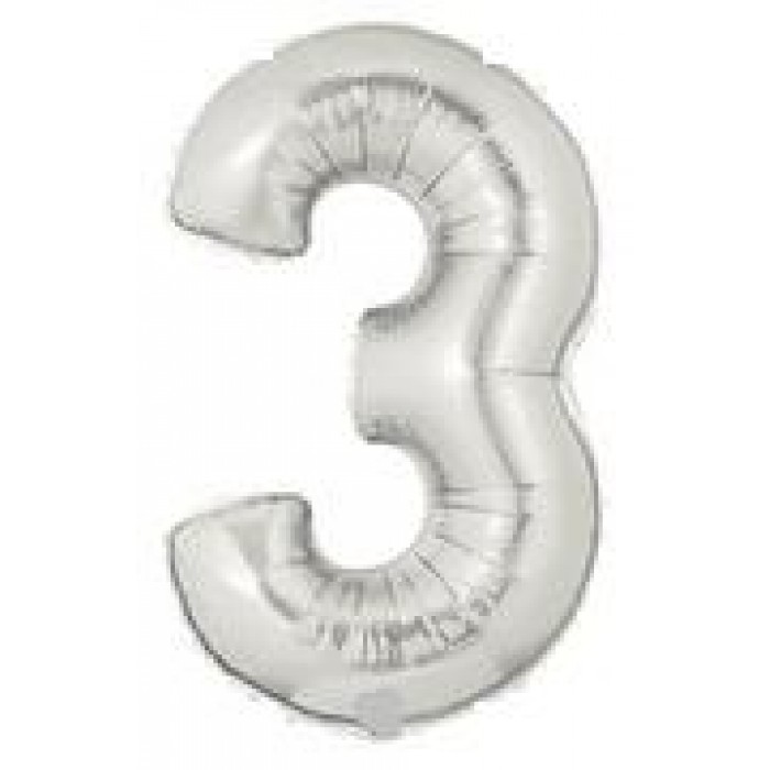 Фолиев балон с клечка цифра “Три“ сребро 30СМ