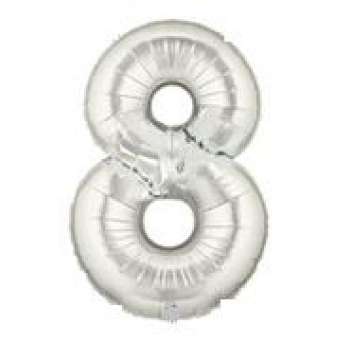 Фолиев балон с клечка цифра “Осем“ сребро 30СМ