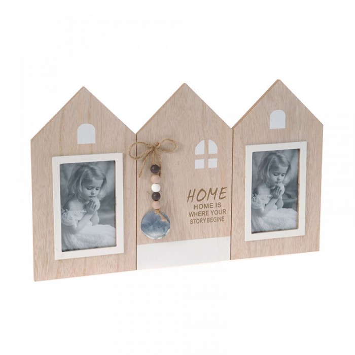 Фото рамка къща, МДФ, за 3 снимки,декор,топчета,50х30 см