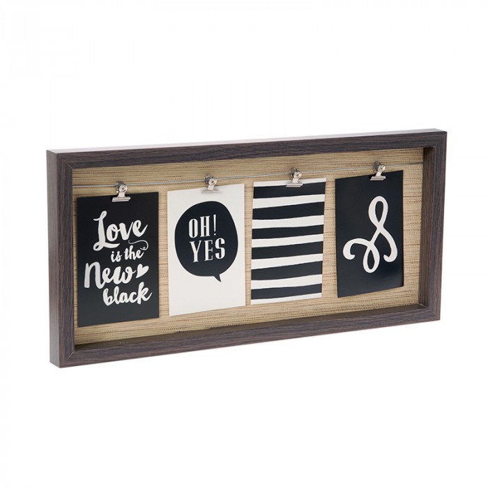 Фото рамка МДФ,за 4 снимки с клипс,релеф,тъмна,24х51 см