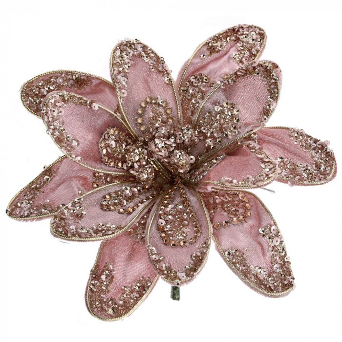 Цвете с шипка, кадифе с маниста, розово, 20 см