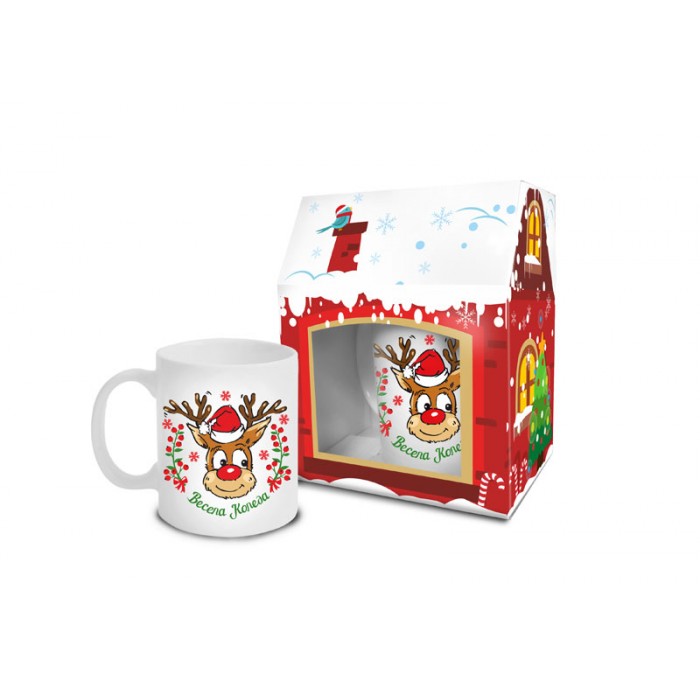 Чаша с кутия - къща и Рудолф “Весела Коледа“ 300ml(1X6)