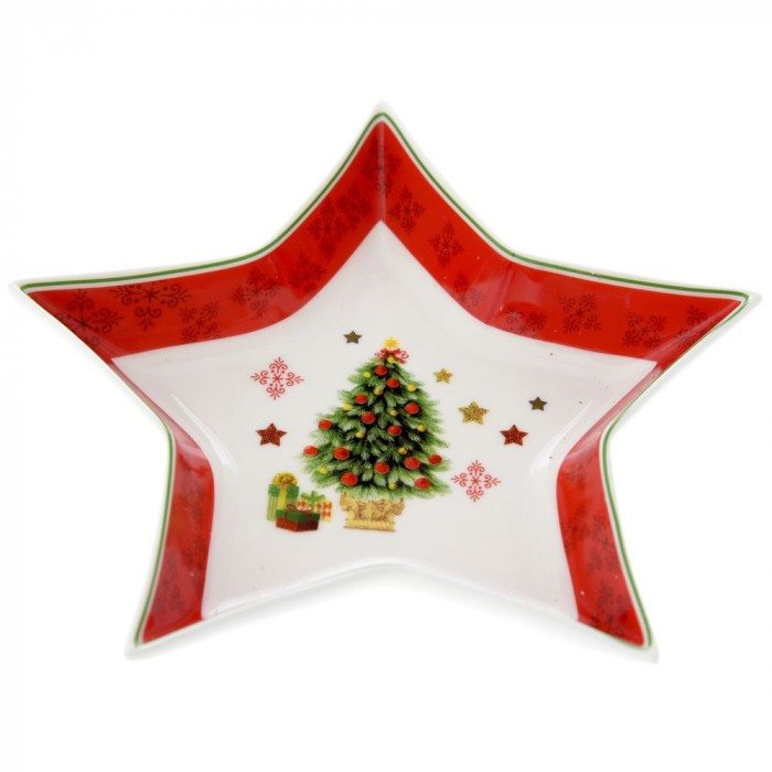 Чиния от китайски порцелан, елха, звезда, 18 см