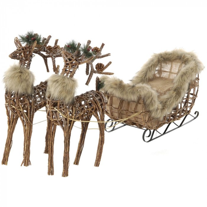 Шейна с елени, дърво с пухена декорация, 76х36х50 см