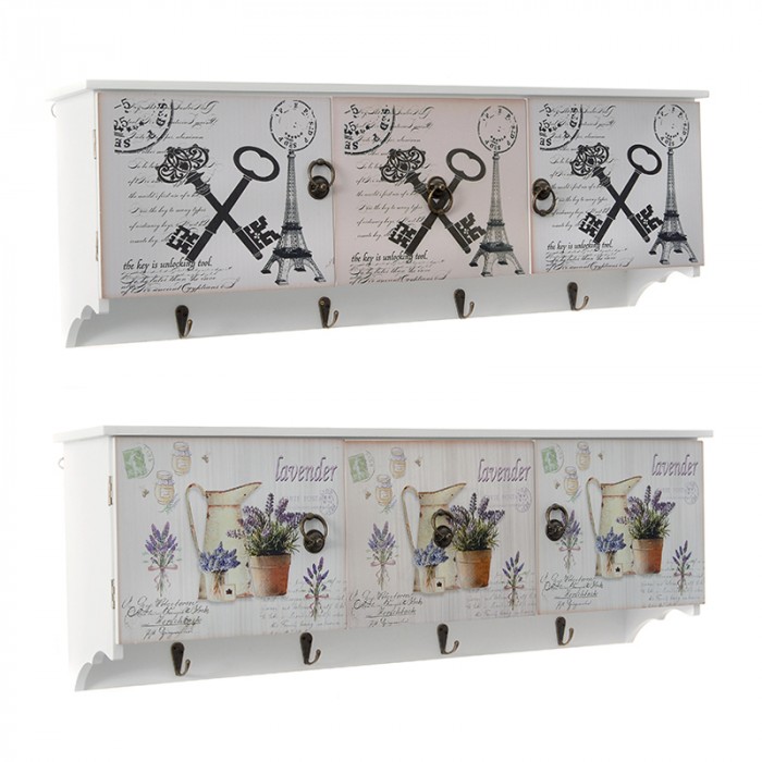 Шкафче дърво със закачалки декор, 68Χ14Χ24СМ