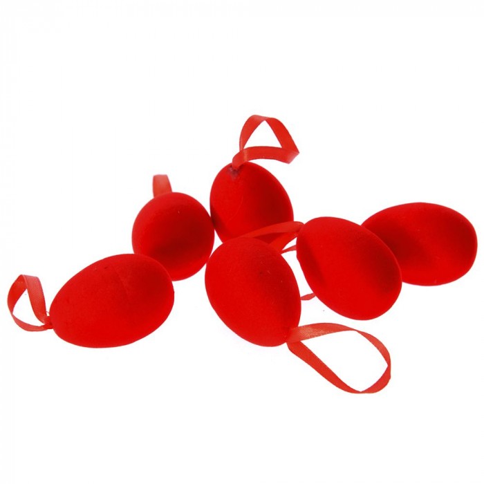 Яйца велур, червени, 6 бр, 4х6 см